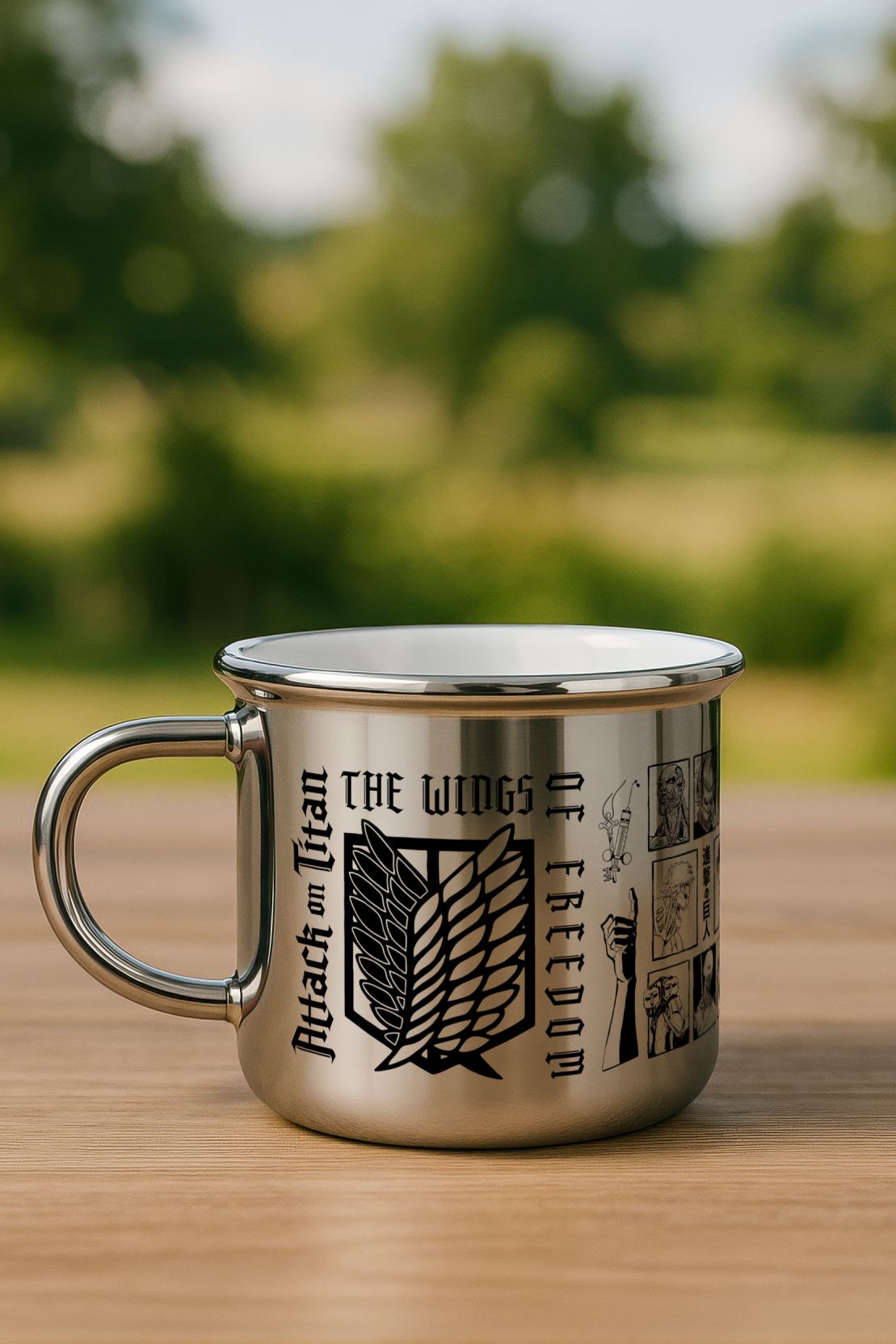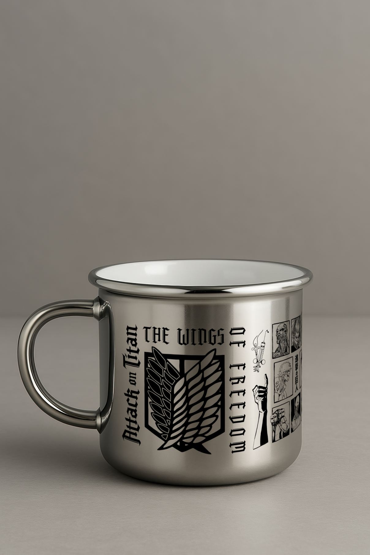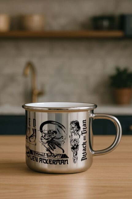 – Attack on Titan temalı özel tasarım kupa, full gümüş rengi ile evinizin veya ofisinizin atmosferini zenginleştirir.